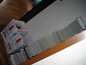 雑誌類は1メートル以上の高さがあって尚且つユラユラ不安定。